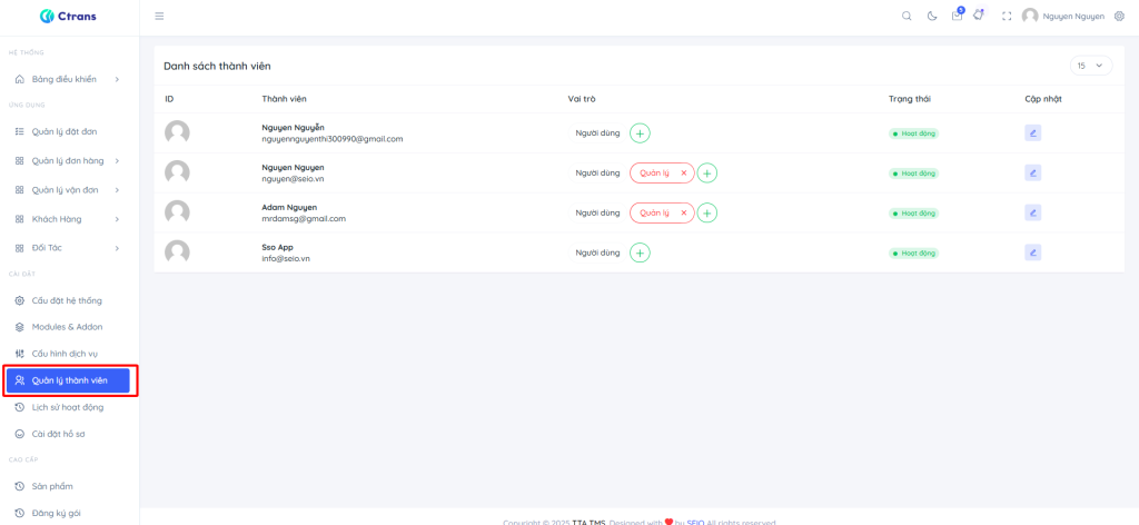 Bước 1: Truy cập màn hình Quản lý thành viên