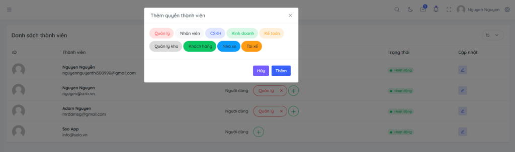 - Chọn vai trò cần thêm (ví dụ: Quản lý)
