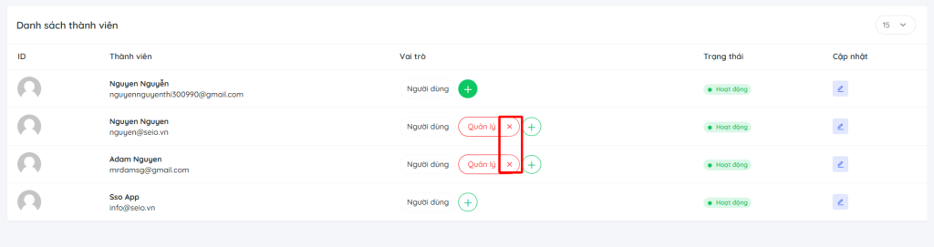 - Nhấn biểu tượng “X” bên cạnh vai trò